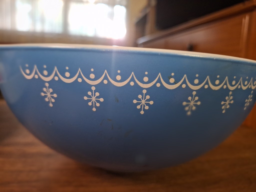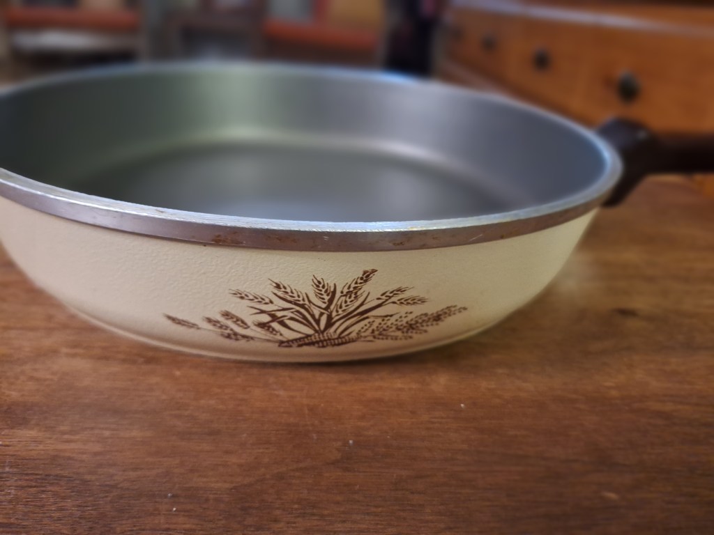 Third, I’m looking for quality. Since antique vendors have already sourced what they are selling in their booths, if you know what you are looking for you will be able to recognize quality and know when you are being charged a fair price. For example, I happen to like Pyrex bowls – I think they are pretty, but they are also the perfect size for when I am mising up batter or dough for baked goods. Although extremely expensive, I know that I can get the indivdual bowls for decent prices. But I have gotten lucky and have two sets – I happened upon some dealers who didn’t normally deal in Pyrex, so they didn’t know what they had or how to properly price them. My gain, in that case. Additionally, I have some bakeware that is older, and made of heavier quality material, that will lat a long time. Recently, I acquired a new Club skillet that matches a set that I received from my grandmother – which she got wwhen she was married in the 1950’s. They are still going strong, and I’ve been able to add to the set. Friends have commented on my use of older cookware – but, I will continue to argue that it is better because of the quality, because I’m still using it despite it’s age.