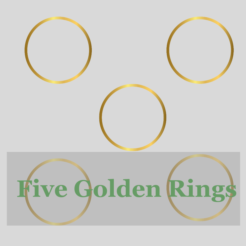 When talk about Five Golden Rings we are talking about the first five books of the Bible: Genesis, Exodus, Leviticus Numbers, and Deuteronomy. These books are known by different names: their names (ie. Genesis), the Books of Moses, the Pentetauch, the Books of the Law, and Torah.