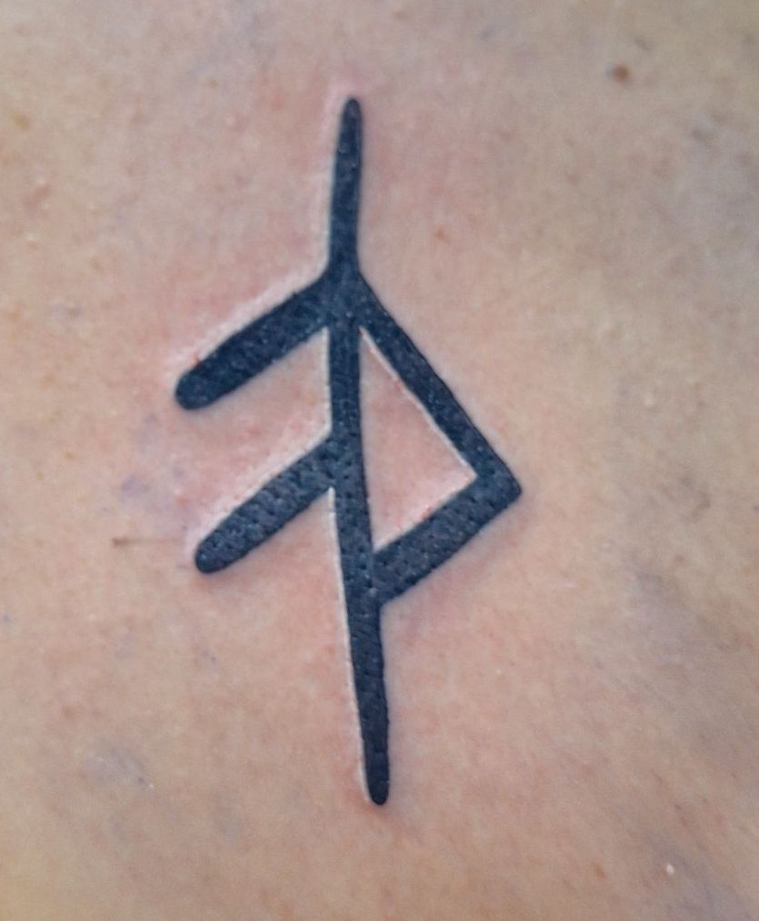 I have the Nordic Rune for grace on my right shoulder blade. I’ve known for years that I wanted to get a tattoo and where I wanted it. The anticipation more than anything is why I waited so long. I chose the rune for grace for three reasons: